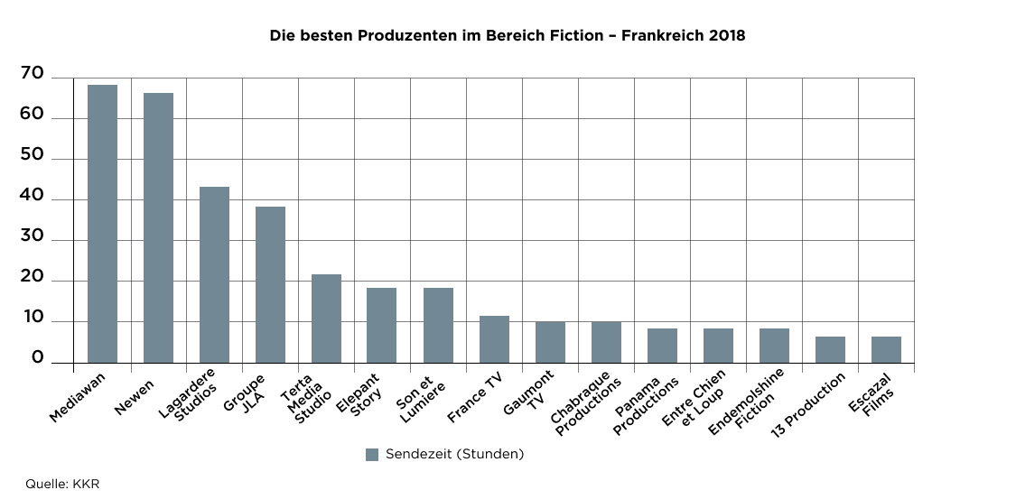 In Frankreich ist die TV-Produktion auf mehr als 20 Produktionsfirmen aufgeteilt. Mediawan ist eine führende unabhängige französische Content-Plattform, welche die gesamte Wertschöpfungskette von der Produktion über den Vertrieb bis hin zur Veröffentlichung audiovisueller Inhalte in ganz Europa abdeckt. Sie ist vor allem für die Produktion des Netflix-Hits Call My Agent bekannt. Durch Fusionen und Übernahmen besitzt Mediawan starke Marken in Frankreich, Italien, Spanien, den Niederlanden, Finnland und im Senegal. Das Unternehmen produziert gemessen an der Stundenzahl die meisten Fernsehfilme und -serien. Mit seinen führenden Kompetenzen, seiner guten Reputation und seinen qualitativ hochwertigen Sendungen ist Mediawan gut aufgestellt, um ein Wachstum über dem Marktdurchschnitt zu erzielen.