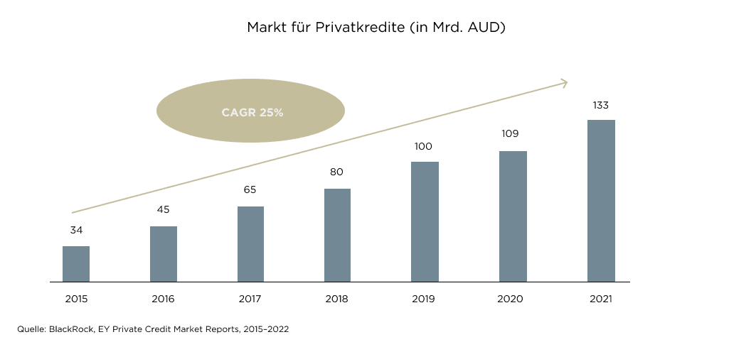 Die traditionellen Privatkundenbanken des Landes zeigen sich bei der Vergabe neuer Kredite aufgrund des regulatorischen Umfelds, der hohen Eigenkapitalanforderungen und der geringen Risikobereitschaft zurückhaltend. Laut dem neuesten von EY und dem Australia Investment Council veröffentlichten Bericht trägt die Kreditvergabe ausserhalb des Bankensektors AUD 1,2 Mrd. zum australischen BIP bei und sichert über 10’000 Arbeitsplätze im Land.