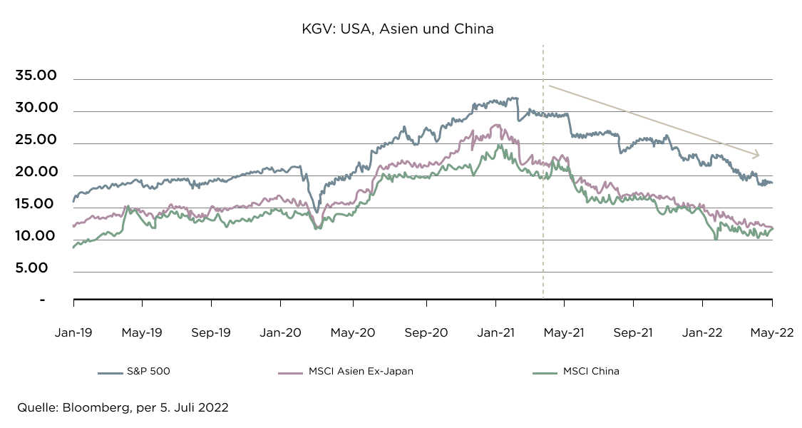 Nach einer Reihe von Lockdowns im ganzen Land und der dynamischen Null-Covid-Politik in der 1. Hälfte des Jahres 2022 wurde im Juni eine Lockerung der Massnahmen angekündigt, darunter eine kürzere Quarantänezeit. In den nächsten Monaten, in denen mit einer weiteren Lockerung der Reisebeschränkungen in China gerechnet wird, dürfte das chinesische BIP dank der relativ niedrigen Inflation, der günstigen Geldpolitik und der starken Exporte wieder wachsen.
