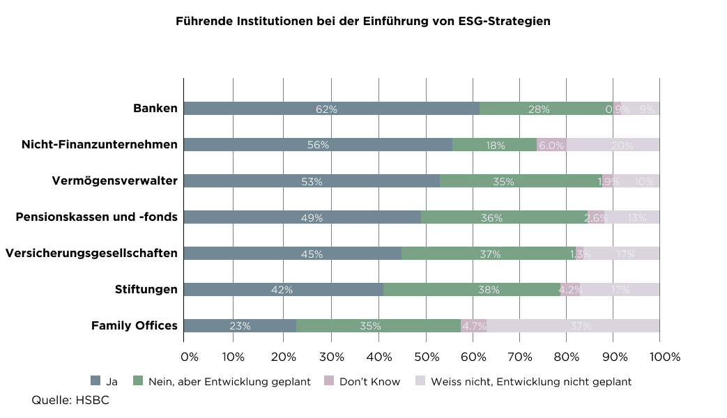 Die von HSBC veröffentlichte Studie «Sustainable Financing and Investing Survey 2020» zeigt, dass Banken und Vermögensverwalter bei der Umsetzung von ESG-Richtlinien führend sind.