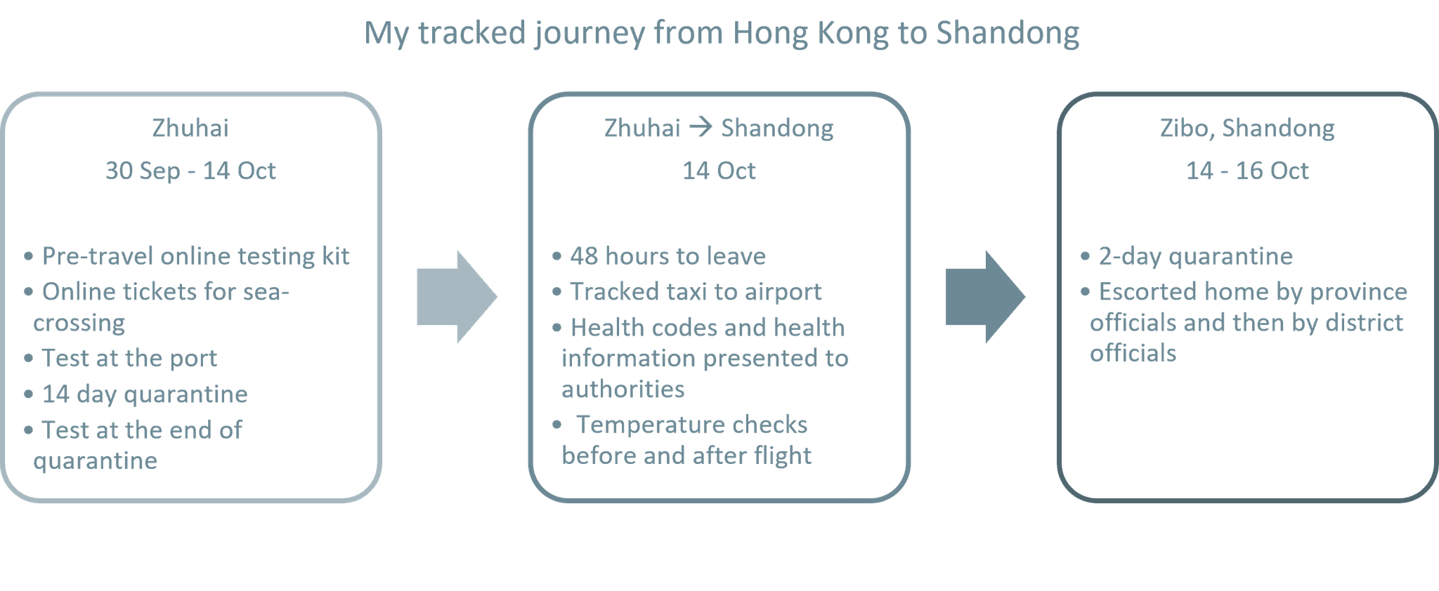 In mainland China, districts and sub-districts arrange airport transfers for residents arriving from overseas so that local communities can acknowledge the quarantine process for each individual resident.