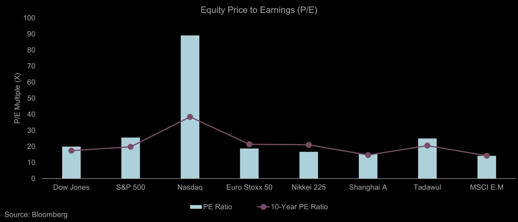 A similar picture appears in public equities with price-to-earnings multiples near record highs. Ned Davis Research (NDR) projects that U.S. equities will produce a 10-year annualized return of 5.6% while the average long-term historical return on public equities is close to 7%.