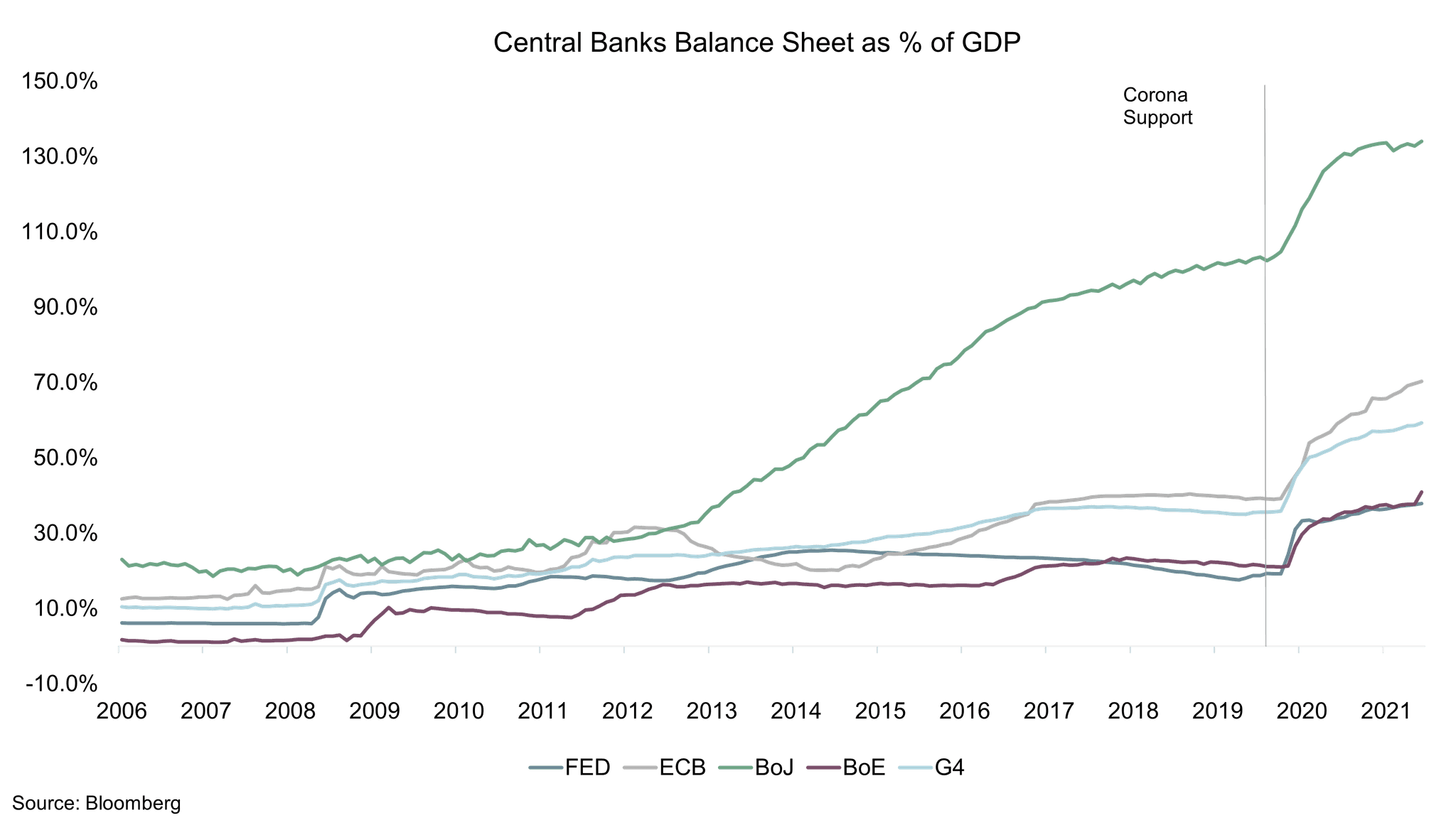 The recovery was kickstarted by an unprecedented monetary stimulus that was much larger than during the Global Financial Crisis. Balance sheets of the G4 central banks as a percentage of GDP have increased 1.5 times to 58%.