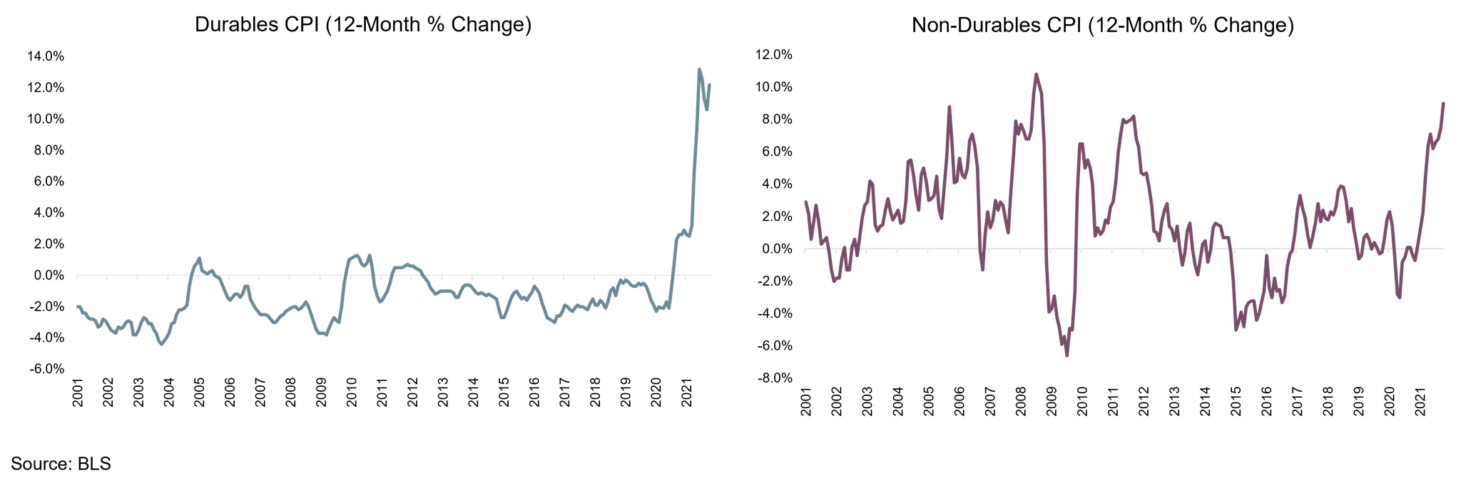 The following charts show a sharp spike in durables CPI, which is traditionally stable. As we emerge from the pandemic, this trend should reverse, along with supply chain disruptions.