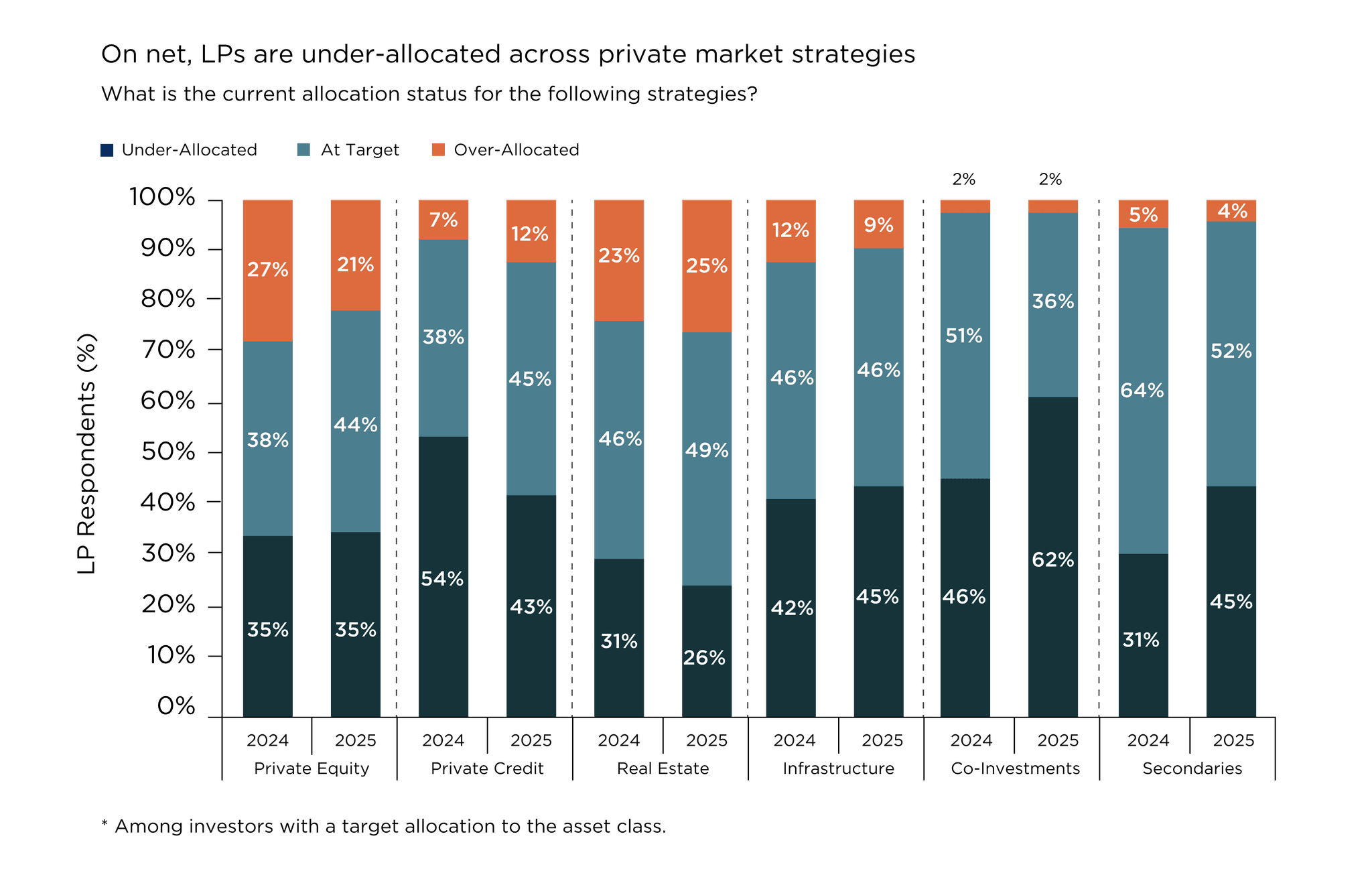 The recent lull in private equity activity has left many funds under-allocated to this asset class, signaling a steady influx of capital in the near future as investors return to the field.