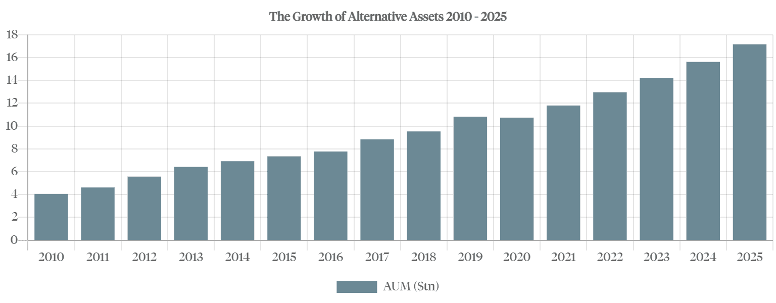 Once considered a niche sector, alternative assets – an area of unlisted assets that includes private equity, private debt, private real estate, hedge funds, infrastructure, and natural resources – is set to surpass US$17 trillion in assets under management (AUM) within the next four years, according to the London-based investment data company Preqin. Private equity and private debt, says Preqin, will drive this growth. (1)