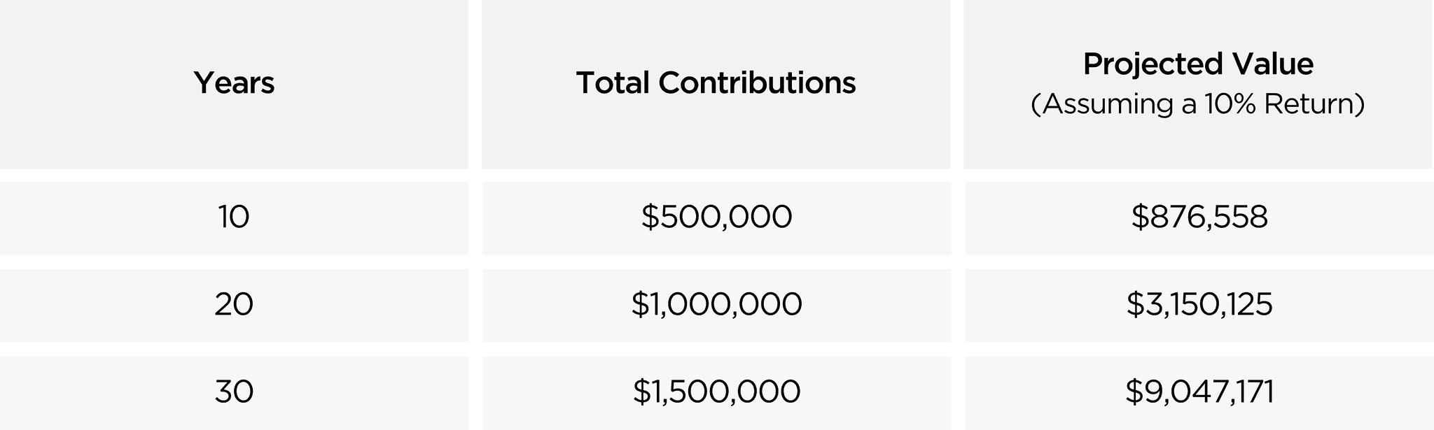 Consider the following projection for a 30-year-old investor contributing $50,000 annually into a diversified private market portfolio with a 10% target return: