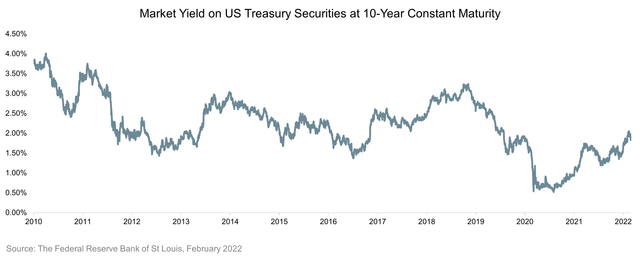 Various factors are driving the switch away from bonds and into private equity and elsewhere. They include the recent resurgence of inflation. Fixed-income yields, having fallen to record lows in recent years, are now facing upward pressure on inflationary concerns and the prospect of tightening monetary conditions. Yields have been on an upward trend since mid-2020 and are almost certain to go higher this year. Inflation in the US rose to an annual pace of 7.5% in January, the highest level seen in 40 years. (3)