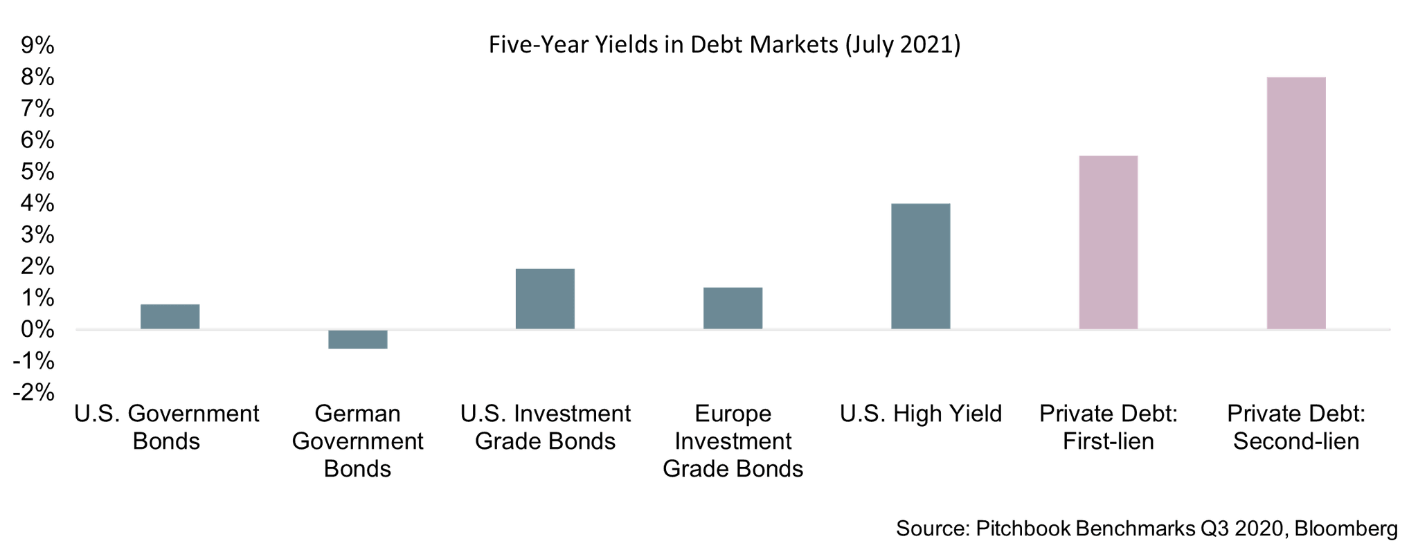 At the same time, private equity and debt compare well to investments in emerging-market debt, high-yield bonds, and public equity markets in terms of volatility. When stock markets crashed and lower-rated debt yields soared in March 2020, following the COVID-19 outbreak, valuations in private markets remained steady, reflecting the relative illiquidity of these investments.